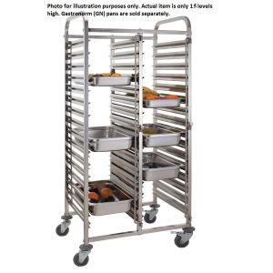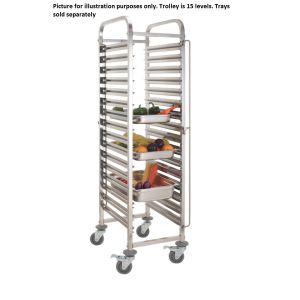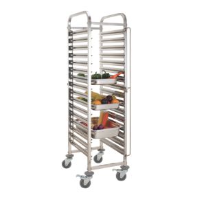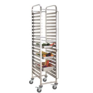 Available in a range of sizes to help you store an array of food and trays, our range of racking trolleys is perfect for use in commercial kitchen and food preparation areas, made from hygienic and durable stainless steel.