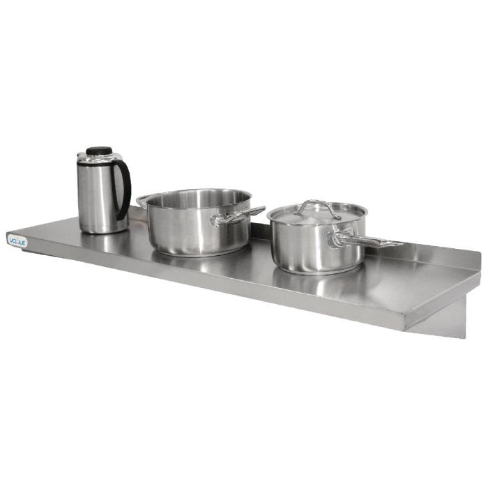 Extra robust shelf that will take up to 50kg - ideal for pots, pans, containers and utensils. 1.2mm thick satin polished finish. Upstand along rear edge. Pots in image sold separately.