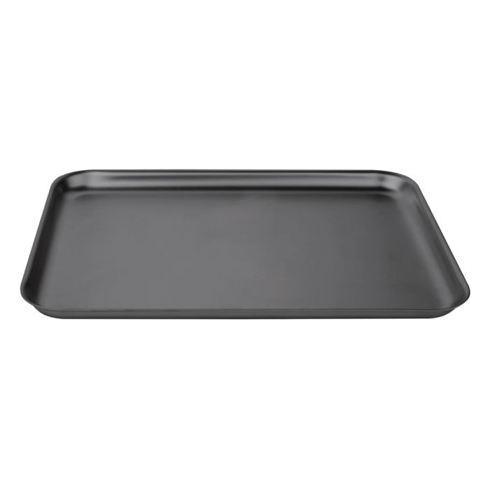 For fast and even cooking, you can't go wrong with this Vogue baking tray. Made from high quality anodised aluminium, the 37cm x 26½cm tray conducts, retains and distributes heat evenly for consistently impressive results. The tough and robust design gives it the strength and durability needed to excel in any commercial kitchen. After use, it's easy to clean and keep in top condition for longer.