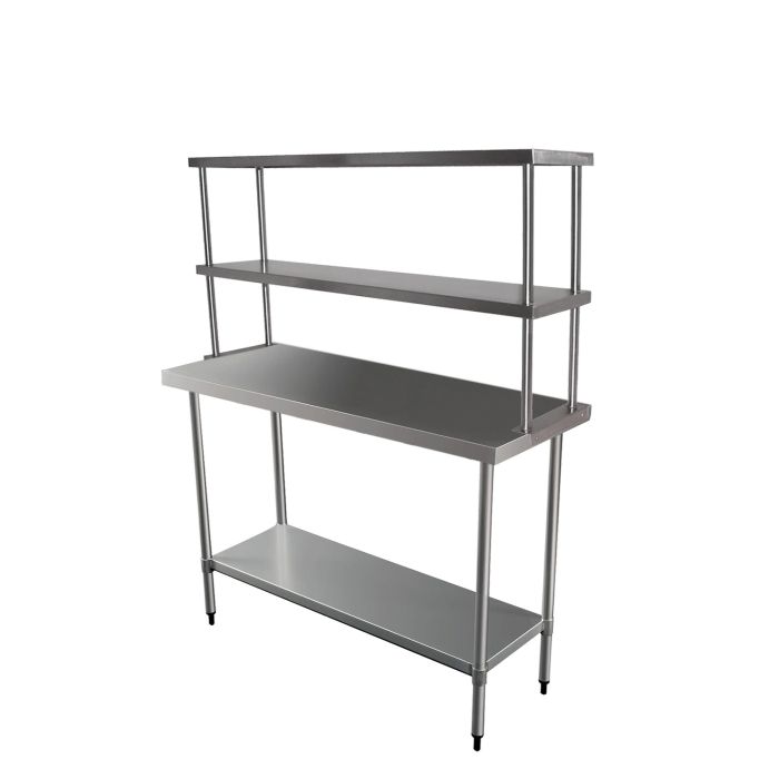 Best use for food preparation areas such as restaurants, cafes, hotels and more. For customers with limited spaces, this double deck overshelf is made of strong, affordable 18 gauge type 430 stainless steel, while a welded construction and polished surfaces provide durability and a sleek look.
